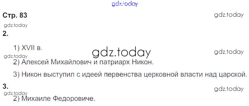 На страницах сайта gdz.today вы найдете учебный и вспомогательный материал, направленный на улучшения знаний школьной программы. ГДЗ - онлайн мир знаний Страницы (решение) 83 Рабочей тетради по Истории России для 7 класса Гевуркова Экзамен УМК 2018