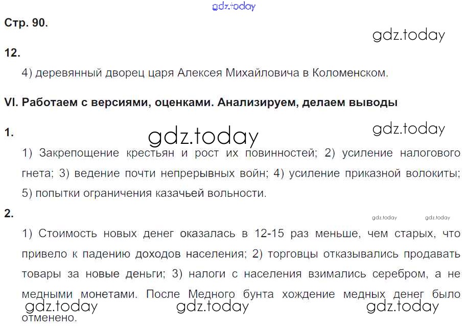 Ответы к Страницы (решение) 90 Рабочей тетради по Истории России для 7 класса Гевуркова Экзамен УМК 2018