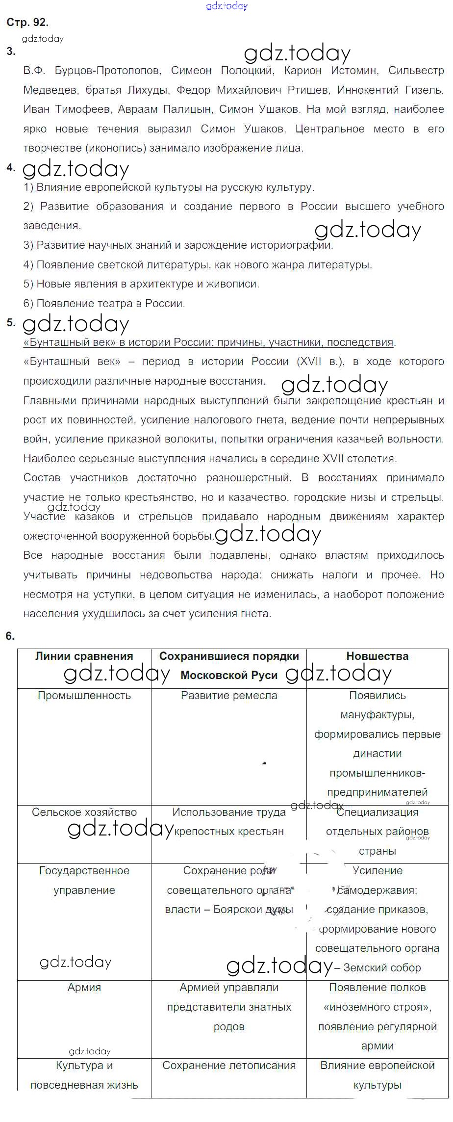 На страницах сайта gdz.today вы найдете учебный и вспомогательный материал, направленный на улучшения знаний школьной программы. ГДЗ - онлайн мир знаний Страницы (решение) 92 Рабочей тетради по Истории России для 7 класса Гевуркова Экзамен УМК 2018