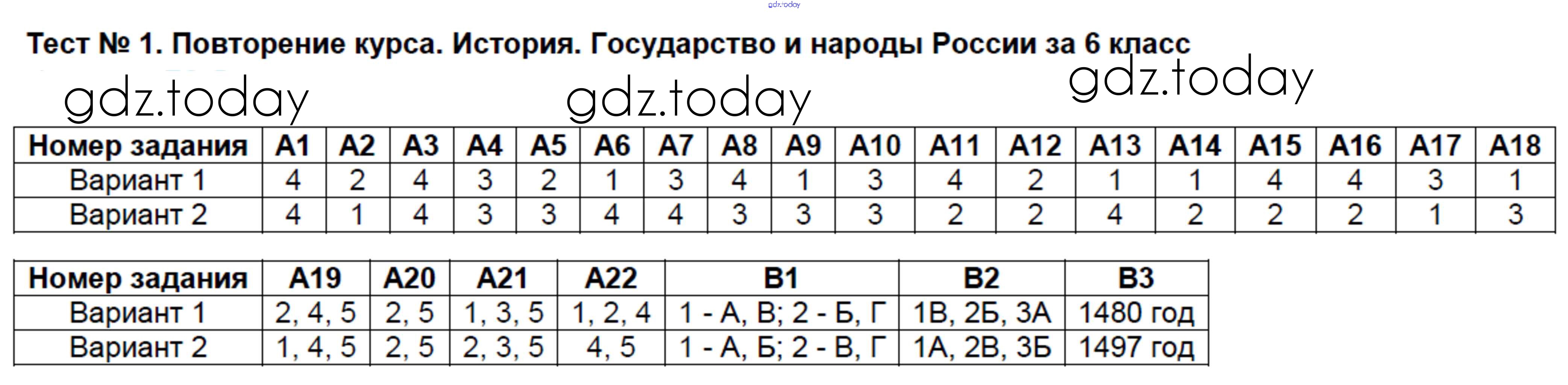 На страницах сайта gdz.today вы найдете учебный и вспомогательный материал, направленный на улучшения знаний школьной программы. ГДЗ - онлайн мир знаний Решение к тестам 1 Контрольно-измерительным материалам (КИМ) по Истории России для 7 класса Волкова ВАКО 2017