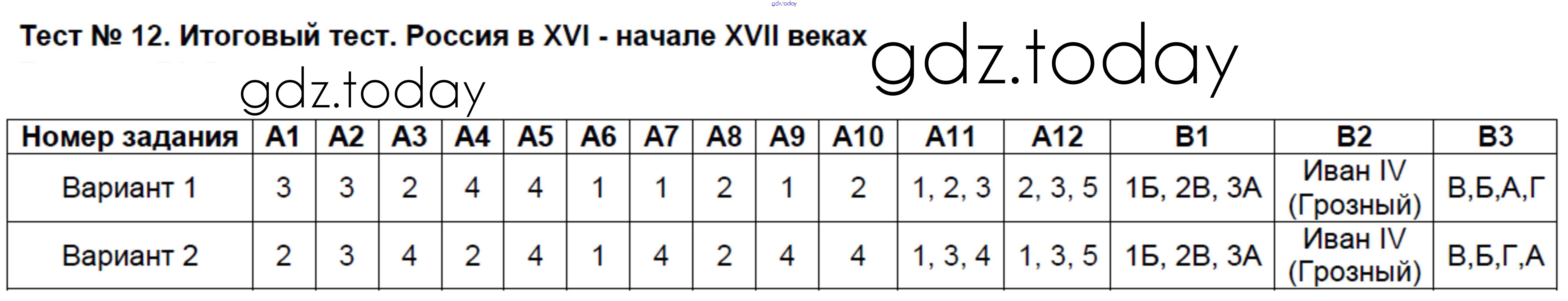 На страницах сайта gdz.today вы найдете учебный и вспомогательный материал, направленный на улучшения знаний школьной программы. ГДЗ - онлайн мир знаний Решение к тестам 12 Контрольно-измерительным материалам (КИМ) по Истории России для 7 класса Волкова ВАКО 2017