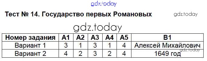 На страницах сайта gdz.today вы найдете учебный и вспомогательный материал, направленный на улучшения знаний школьной программы. ГДЗ - онлайн мир знаний Решение к тестам 14 Контрольно-измерительным материалам (КИМ) по Истории России для 7 класса Волкова ВАКО 2017