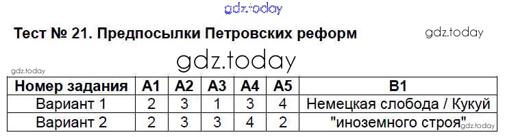 На страницах сайта gdz.today вы найдете учебный и вспомогательный материал, направленный на улучшения знаний школьной программы. ГДЗ - онлайн мир знаний Решение к тестам 21 Контрольно-измерительным материалам (КИМ) по Истории России для 7 класса Волкова ВАКО 2017