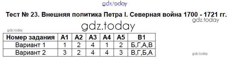 На страницах сайта gdz.today вы найдете учебный и вспомогательный материал, направленный на улучшения знаний школьной программы. ГДЗ - онлайн мир знаний Решение к тестам 23 Контрольно-измерительным материалам (КИМ) по Истории России для 7 класса Волкова ВАКО 2017