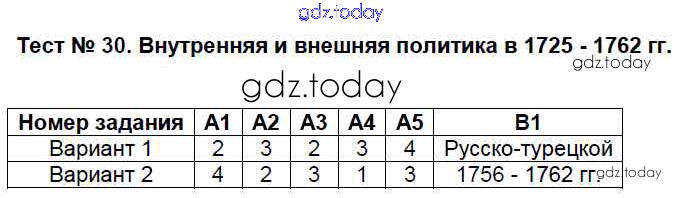 На страницах сайта gdz.today вы найдете учебный и вспомогательный материал, направленный на улучшения знаний школьной программы. ГДЗ - онлайн мир знаний Решение к тестам 30 Контрольно-измерительным материалам (КИМ) по Истории России для 7 класса Волкова ВАКО 2017