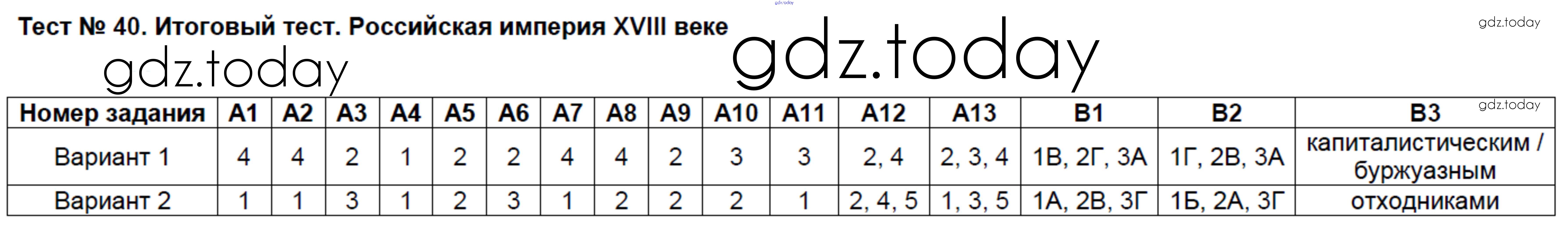 На страницах сайта gdz.today вы найдете учебный и вспомогательный материал, направленный на улучшения знаний школьной программы. ГДЗ - онлайн мир знаний Решение к тестам 40 Контрольно-измерительным материалам (КИМ) по Истории России для 7 класса Волкова ВАКО 2017