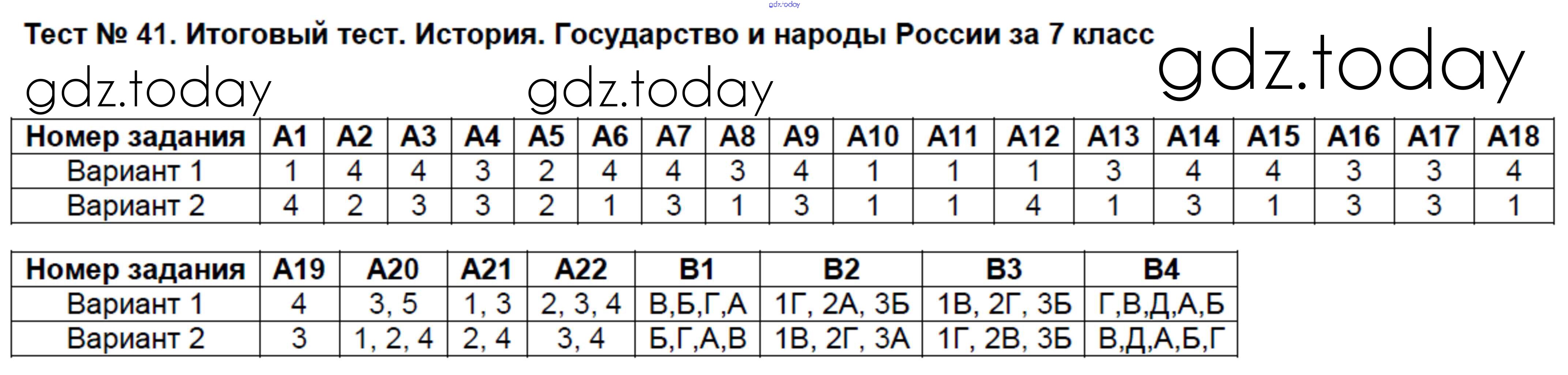 На страницах сайта gdz.today вы найдете учебный и вспомогательный материал, направленный на улучшения знаний школьной программы. ГДЗ - онлайн мир знаний Решение к тестам 41 Контрольно-измерительным материалам (КИМ) по Истории России для 7 класса Волкова ВАКО 2017