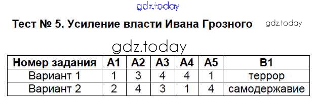 На страницах сайта gdz.today вы найдете учебный и вспомогательный материал, направленный на улучшения знаний школьной программы. ГДЗ - онлайн мир знаний Решение к тестам 5 Контрольно-измерительным материалам (КИМ) по Истории России для 7 класса Волкова ВАКО 2017