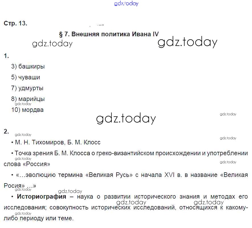 На страницах сайта gdz.today вы найдете учебный и вспомогательный материал, направленный на улучшения знаний школьной программы. ГДЗ - онлайн мир знаний Страницы (решение) 13 Рабочей тетради по Истории России для 7 класса Симонова, Клоков Дрофа УМК 2018
