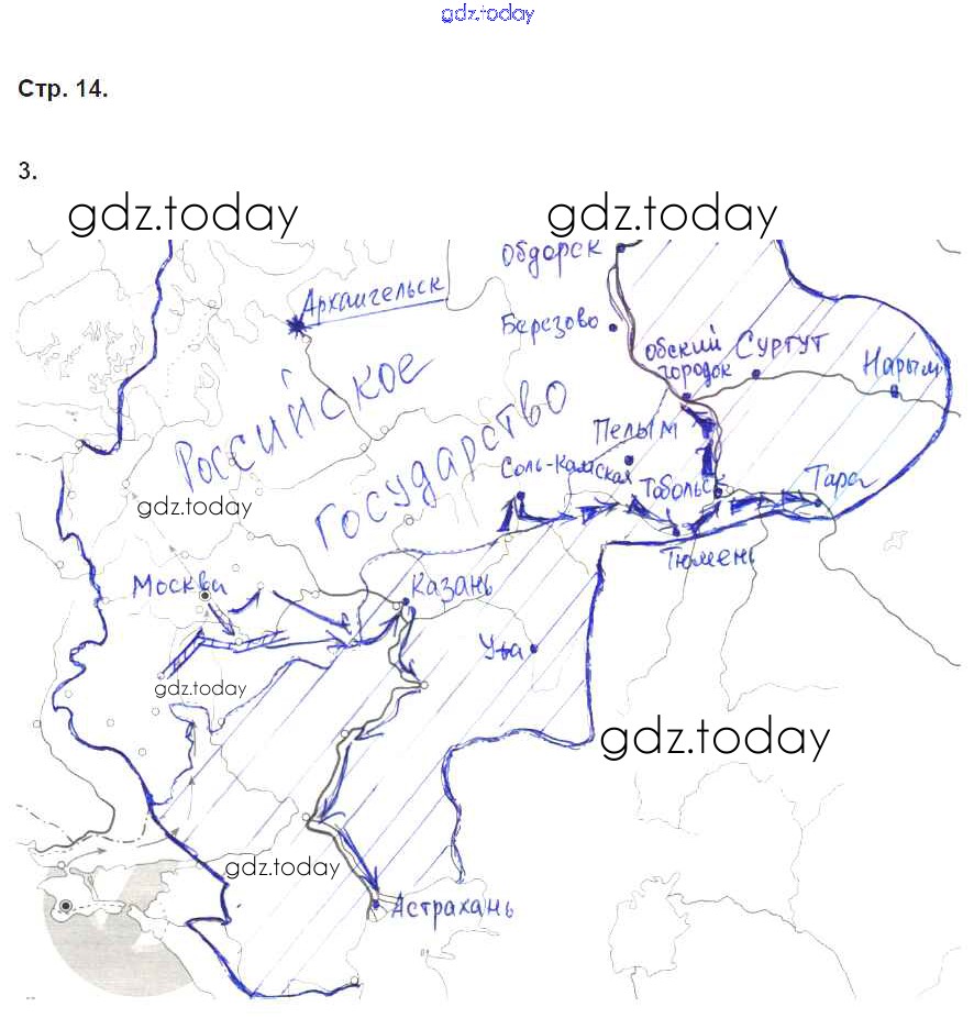 На страницах сайта gdz.today вы найдете учебный и вспомогательный материал, направленный на улучшения знаний школьной программы. ГДЗ - онлайн мир знаний Страницы (решение) 14 Рабочей тетради по Истории России для 7 класса Симонова, Клоков Дрофа УМК 2018