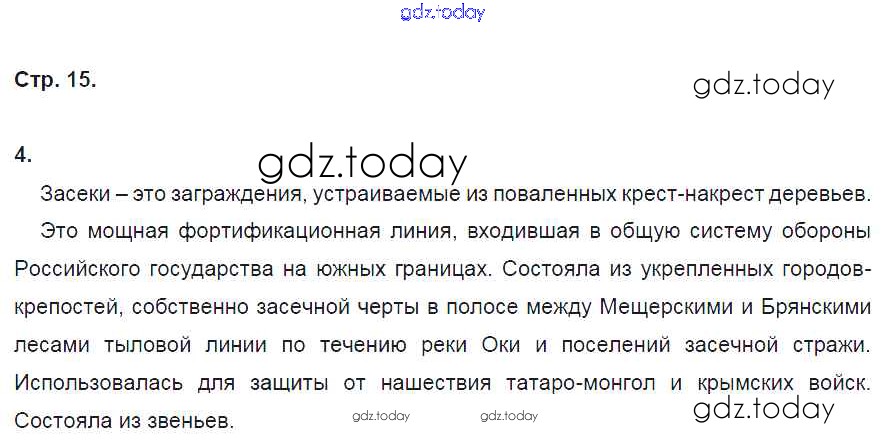 На страницах сайта gdz.today вы найдете учебный и вспомогательный материал, направленный на улучшения знаний школьной программы. ГДЗ - онлайн мир знаний Страницы (решение) 15 Рабочей тетради по Истории России для 7 класса Симонова, Клоков Дрофа УМК 2018
