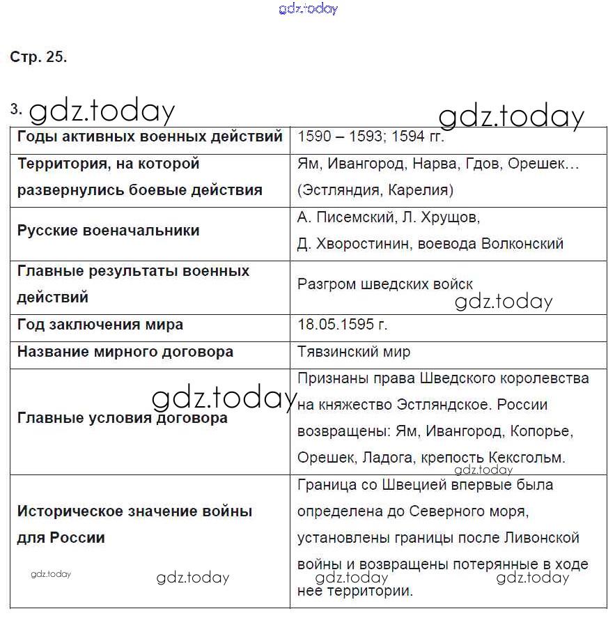 На страницах сайта gdz.today вы найдете учебный и вспомогательный материал, направленный на улучшения знаний школьной программы. ГДЗ - онлайн мир знаний Страницы (решение) 25 Рабочей тетради по Истории России для 7 класса Симонова, Клоков Дрофа УМК 2018