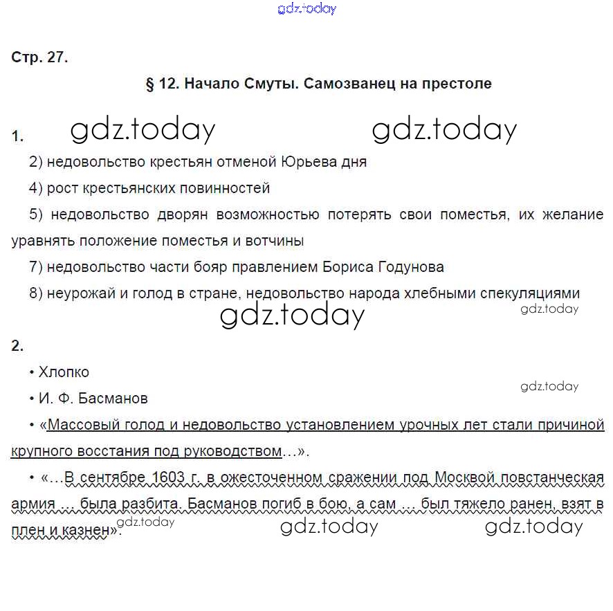 На страницах сайта gdz.today вы найдете учебный и вспомогательный материал, направленный на улучшения знаний школьной программы. ГДЗ - онлайн мир знаний Страницы (решение) 27 Рабочей тетради по Истории России для 7 класса Симонова, Клоков Дрофа УМК 2018