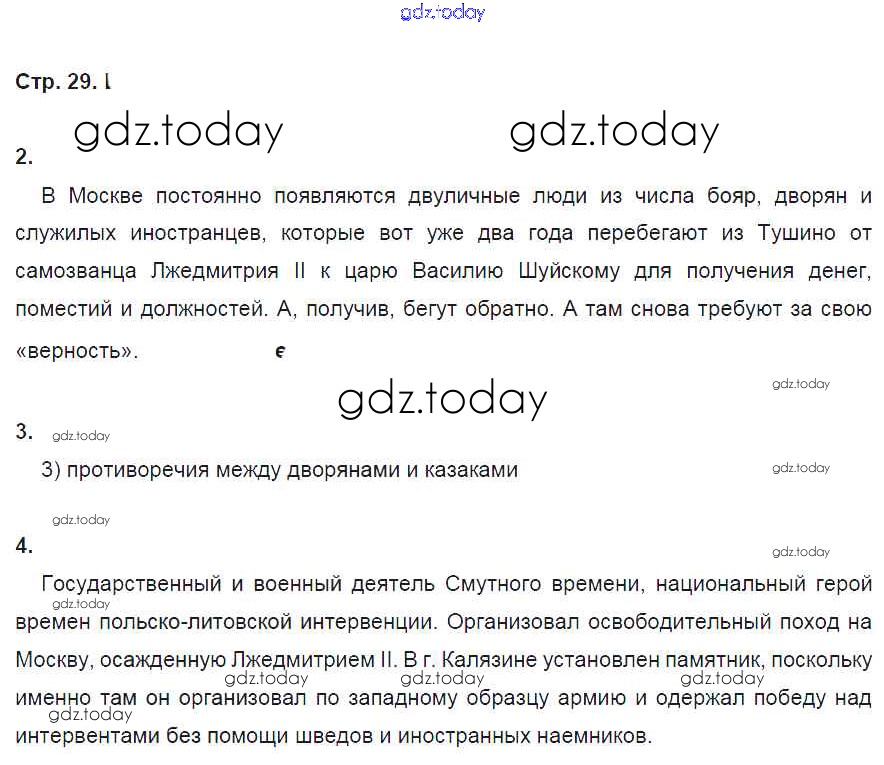 На страницах сайта gdz.today вы найдете учебный и вспомогательный материал, направленный на улучшения знаний школьной программы. ГДЗ - онлайн мир знаний Страницы (решение) 29 Рабочей тетради по Истории России для 7 класса Симонова, Клоков Дрофа УМК 2018
