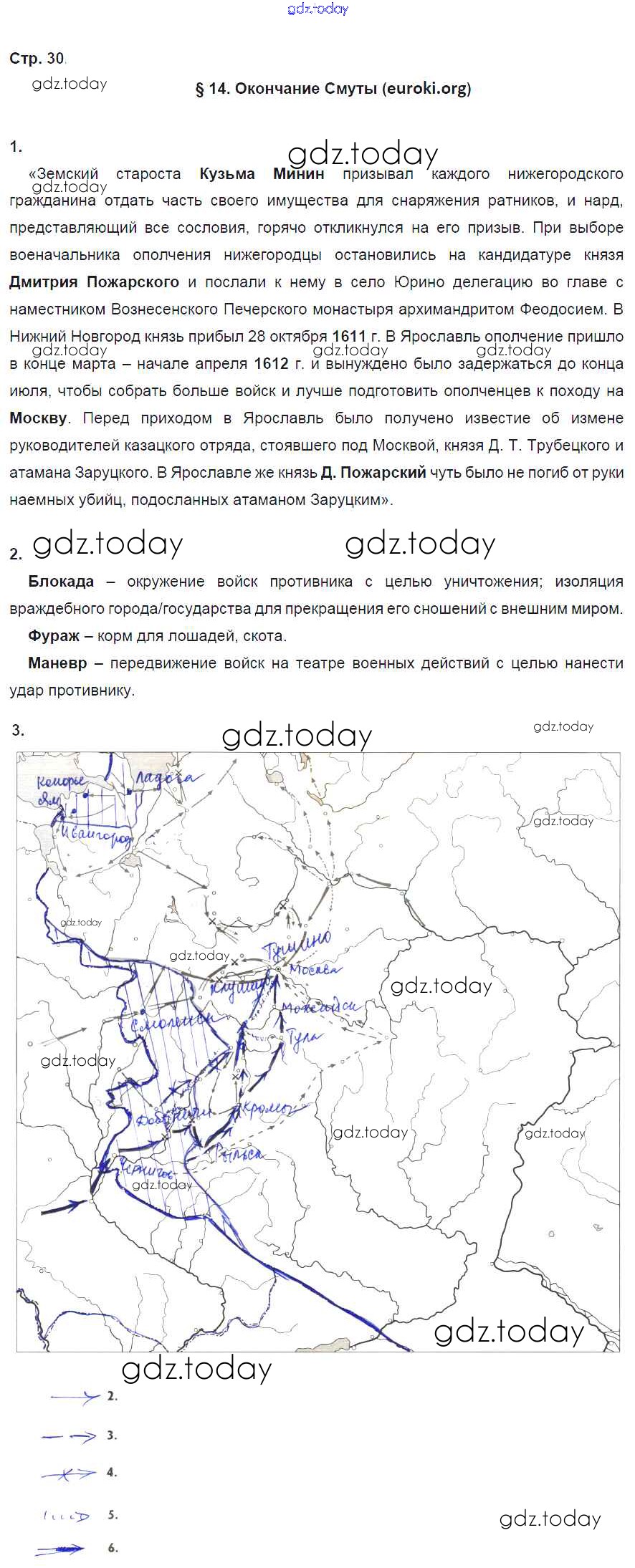 На страницах сайта gdz.today вы найдете учебный и вспомогательный материал, направленный на улучшения знаний школьной программы. ГДЗ - онлайн мир знаний Страницы (решение) 30 Рабочей тетради по Истории России для 7 класса Симонова, Клоков Дрофа УМК 2018