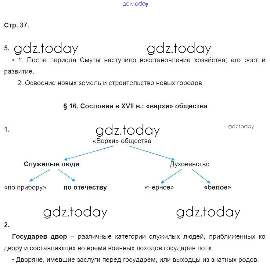 На страницах сайта gdz.today вы найдете учебный и вспомогательный материал, направленный на улучшения знаний школьной программы. ГДЗ - онлайн мир знаний Страницы (решение) 37 Рабочей тетради по Истории России для 7 класса Симонова, Клоков Дрофа УМК 2018