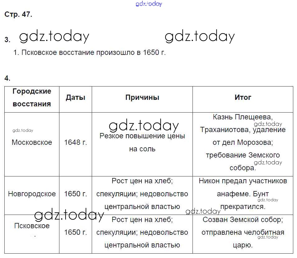 На страницах сайта gdz.today вы найдете учебный и вспомогательный материал, направленный на улучшения знаний школьной программы. ГДЗ - онлайн мир знаний Страницы (решение) 47 Рабочей тетради по Истории России для 7 класса Симонова, Клоков Дрофа УМК 2018