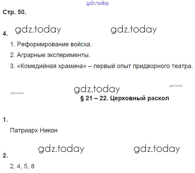 На страницах сайта gdz.today вы найдете учебный и вспомогательный материал, направленный на улучшения знаний школьной программы. ГДЗ - онлайн мир знаний Страницы (решение) 50 Рабочей тетради по Истории России для 7 класса Симонова, Клоков Дрофа УМК 2018