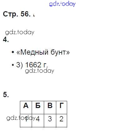 Ответы к Страницы (решение) 56 Рабочей тетради по Истории России для 7 класса Симонова, Клоков Дрофа УМК 2018