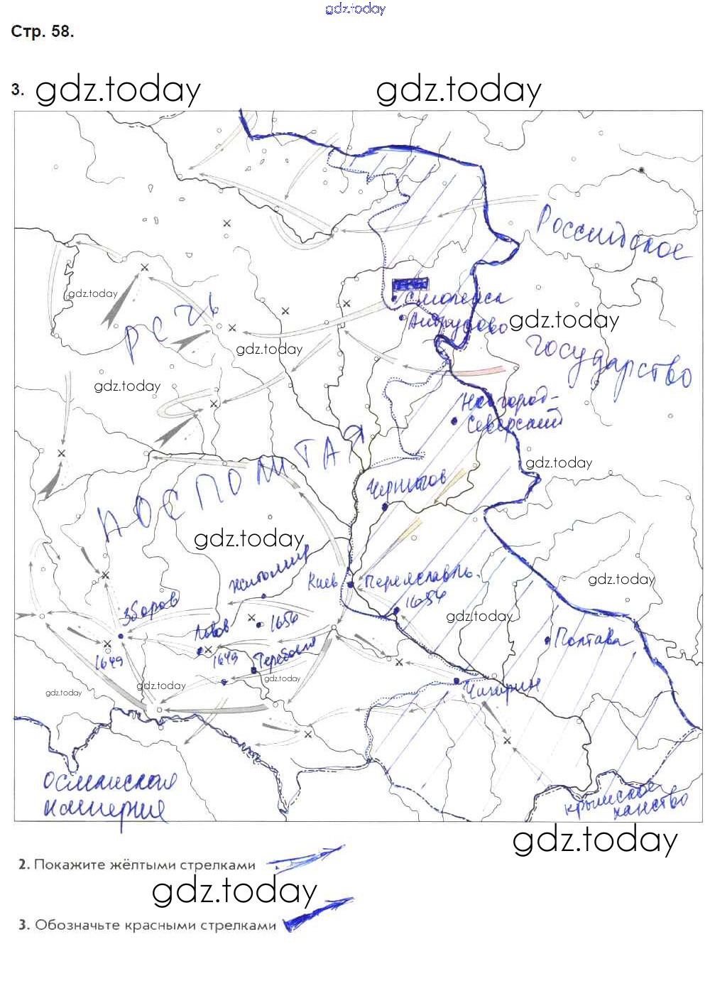 На страницах сайта gdz.today вы найдете учебный и вспомогательный материал, направленный на улучшения знаний школьной программы. ГДЗ - онлайн мир знаний Страницы (решение) 58 Рабочей тетради по Истории России для 7 класса Симонова, Клоков Дрофа УМК 2018