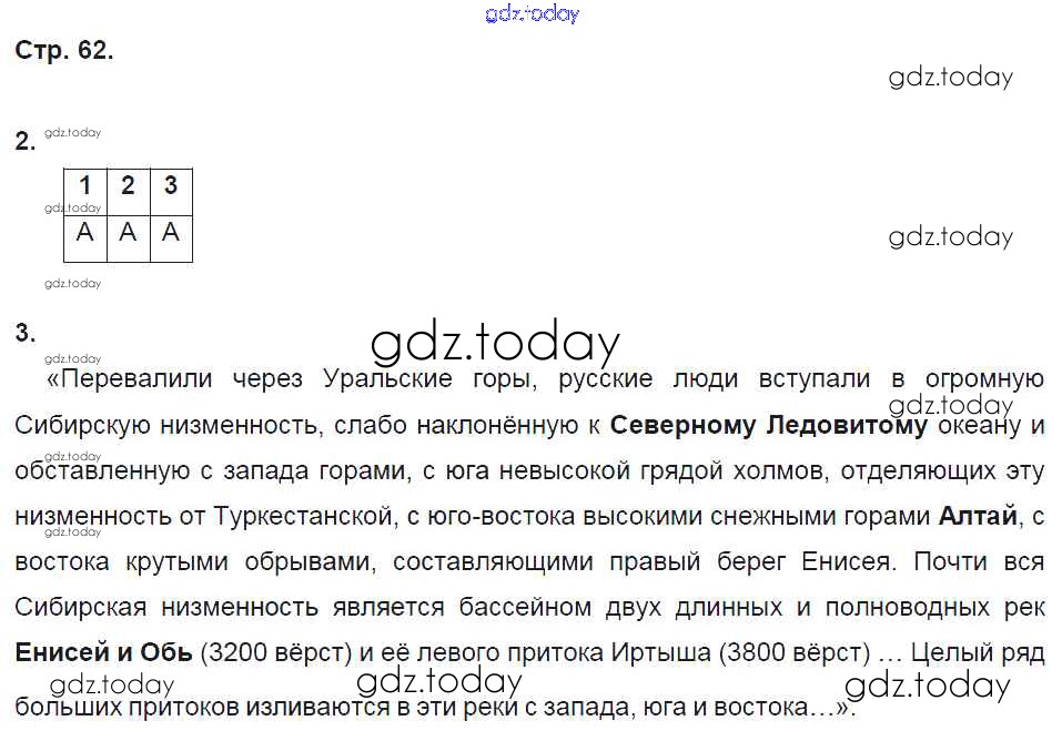 На страницах сайта gdz.today вы найдете учебный и вспомогательный материал, направленный на улучшения знаний школьной программы. ГДЗ - онлайн мир знаний Страницы (решение) 62 Рабочей тетради по Истории России для 7 класса Симонова, Клоков Дрофа УМК 2018