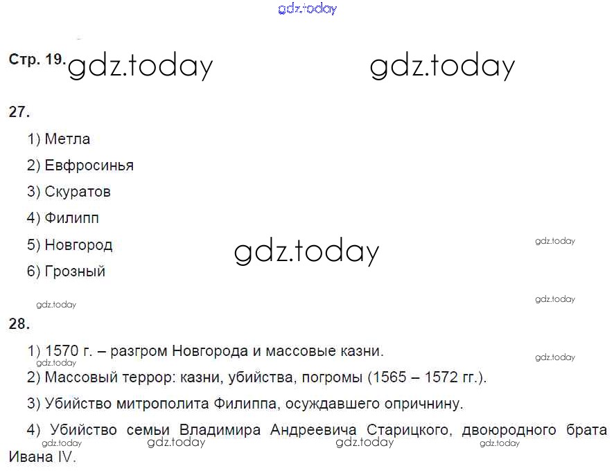 На страницах сайта gdz.today вы найдете учебный и вспомогательный материал, направленный на улучшения знаний школьной программы. ГДЗ - онлайн мир знаний Страницы (решение) 19 Рабочей тетради по Истории России для 7 класса Кочегаров Русское слово Инновационная школа 2017