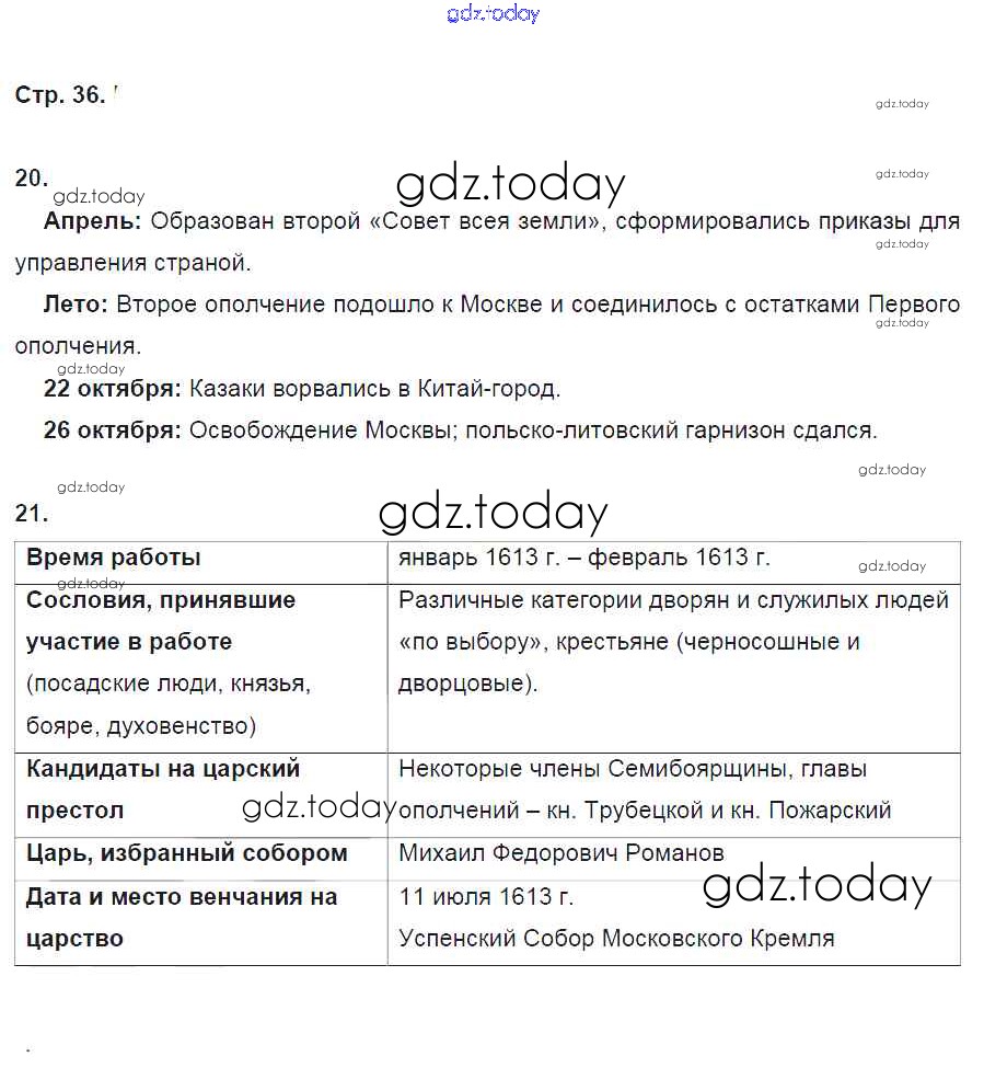 На страницах сайта gdz.today вы найдете учебный и вспомогательный материал, направленный на улучшения знаний школьной программы. ГДЗ - онлайн мир знаний Страницы (решение) 36 Рабочей тетради по Истории России для 7 класса Кочегаров Русское слово Инновационная школа 2017