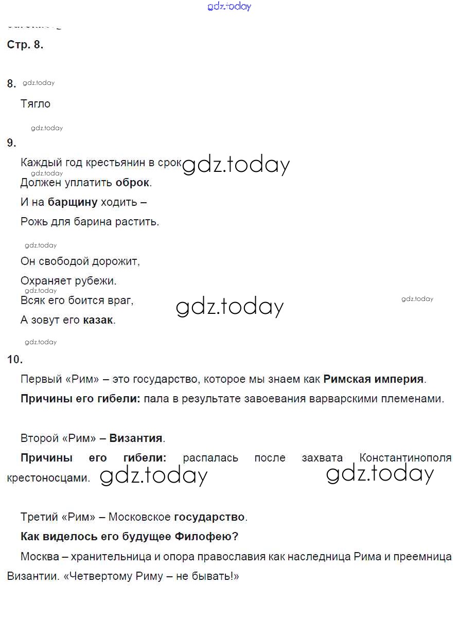 На страницах сайта gdz.today вы найдете учебный и вспомогательный материал, направленный на улучшения знаний школьной программы. ГДЗ - онлайн мир знаний Страницы (решение) 8 Рабочей тетради по Истории России для 7 класса Кочегаров Русское слово Инновационная школа 2017