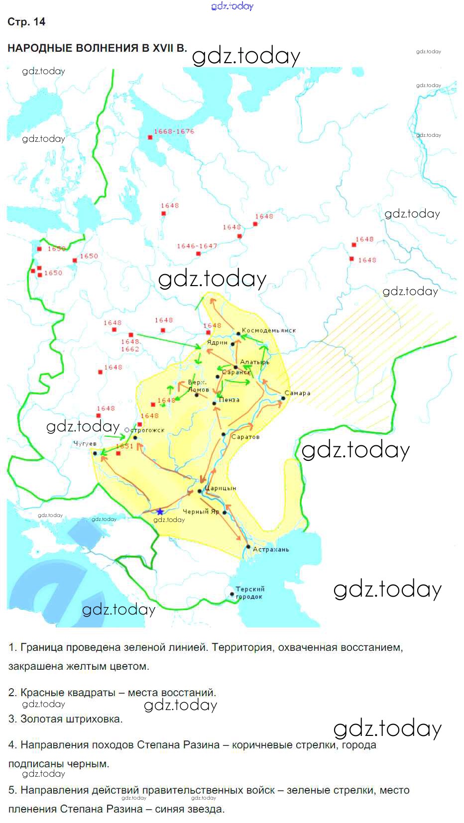 Ответы к Страницы (решение) 14 Контурным картам по Истории России для 7 класса Лукин Русское слово 2017