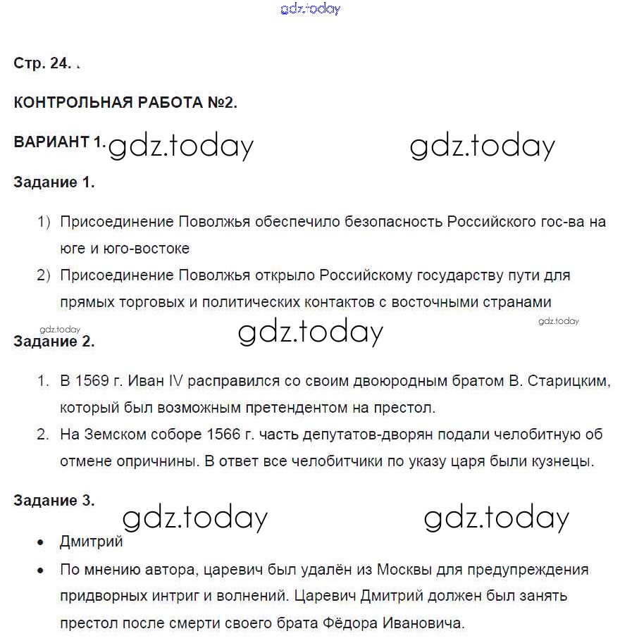 На страницах сайта gdz.today вы найдете учебный и вспомогательный материал, направленный на улучшения знаний школьной программы. ГДЗ - онлайн мир знаний Страницы (решение) 24 Контрольным работам по Истории России для 7 класса Артасов Просвещение УМК 2016