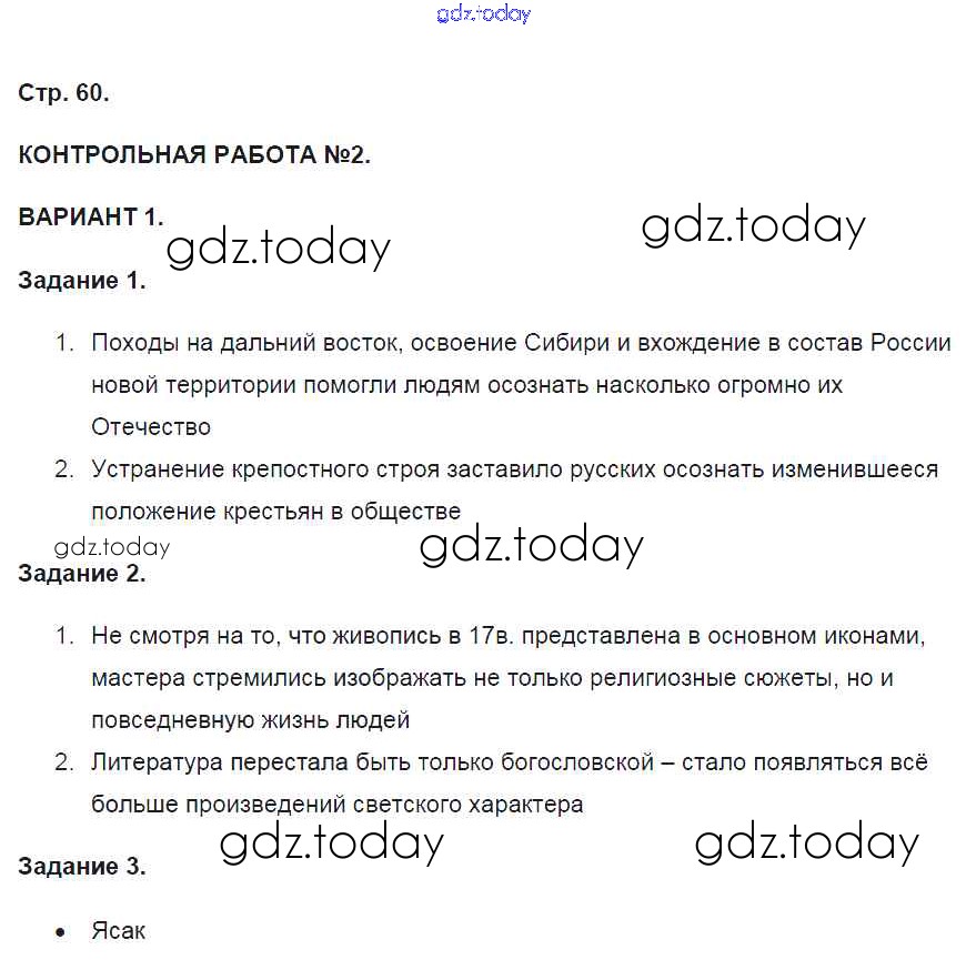 На страницах сайта gdz.today вы найдете учебный и вспомогательный материал, направленный на улучшения знаний школьной программы. ГДЗ - онлайн мир знаний Страницы (решение) 60 Контрольным работам по Истории России для 7 класса Артасов Просвещение УМК 2016