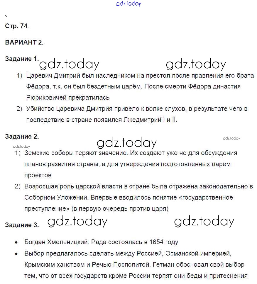 На страницах сайта gdz.today вы найдете учебный и вспомогательный материал, направленный на улучшения знаний школьной программы. ГДЗ - онлайн мир знаний Страницы (решение) 74 Контрольным работам по Истории России для 7 класса Артасов Просвещение УМК 2016