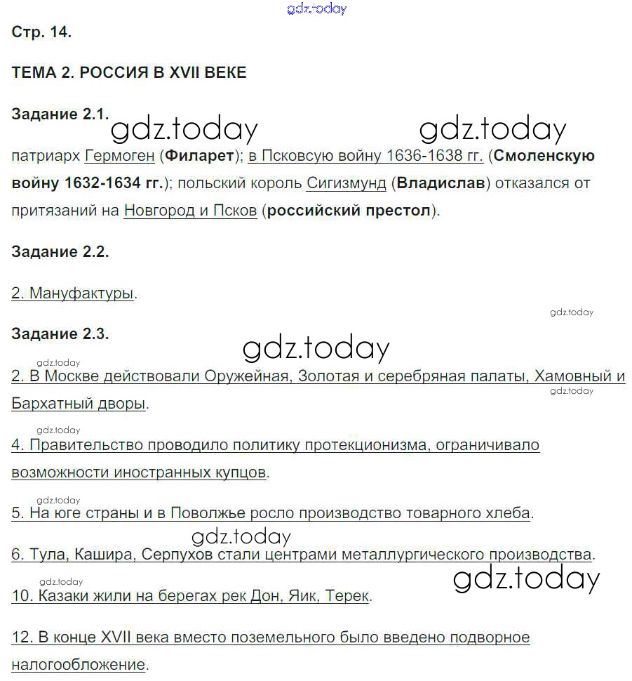 На страницах сайта gdz.today вы найдете учебный и вспомогательный материал, направленный на улучшения знаний школьной программы. ГДЗ - онлайн мир знаний Страницы (решение) 14 Рабочей тетради по Истории России для 7 класса Симонова Экзамен УМК 2015