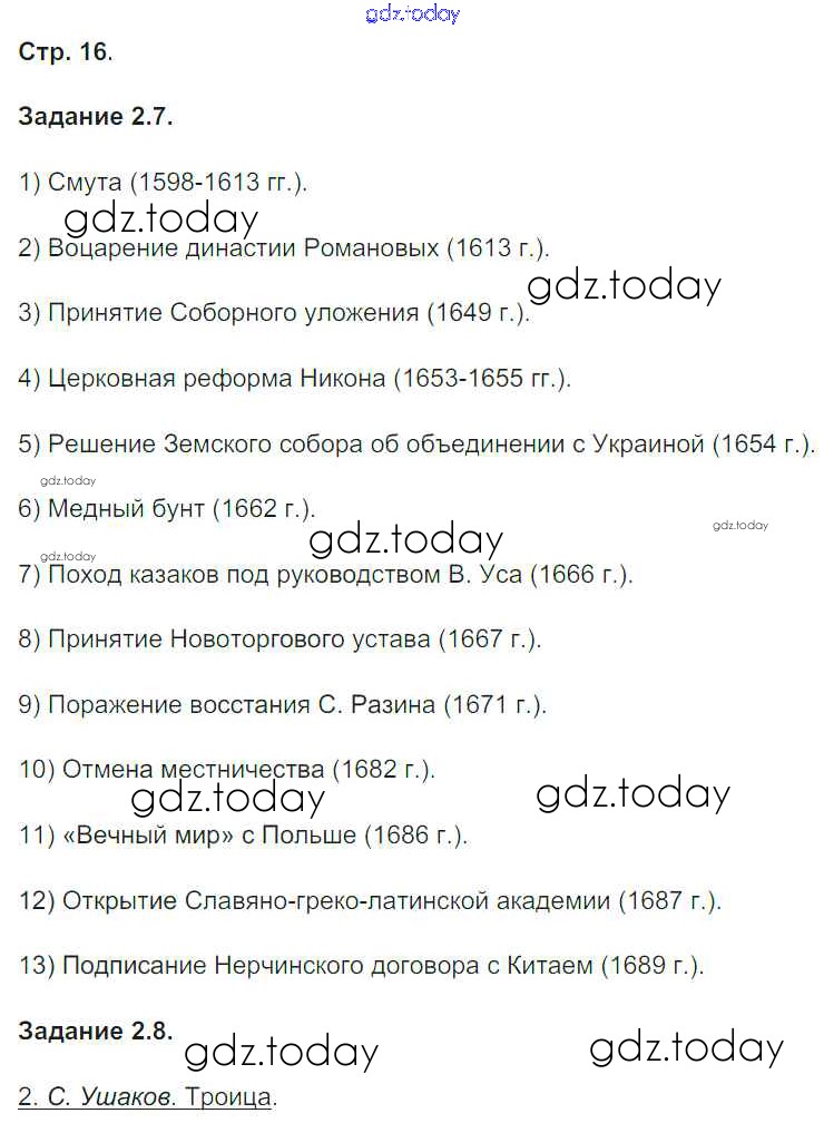 На страницах сайта gdz.today вы найдете учебный и вспомогательный материал, направленный на улучшения знаний школьной программы. ГДЗ - онлайн мир знаний Страницы (решение) 16 Рабочей тетради по Истории России для 7 класса Симонова Экзамен УМК 2015