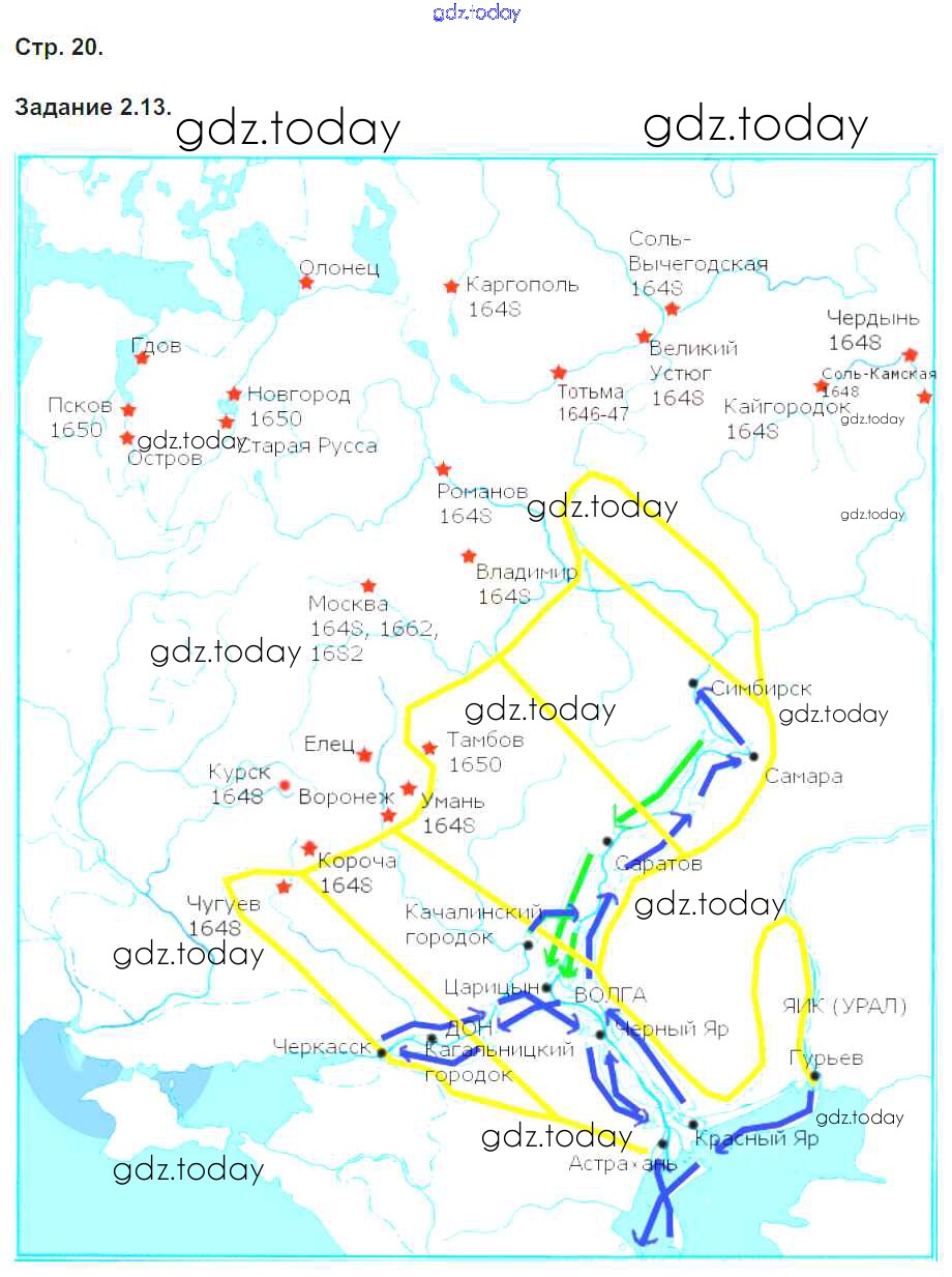 На страницах сайта gdz.today вы найдете учебный и вспомогательный материал, направленный на улучшения знаний школьной программы. ГДЗ - онлайн мир знаний Страницы (решение) 20 Рабочей тетради по Истории России для 7 класса Симонова Экзамен УМК 2015