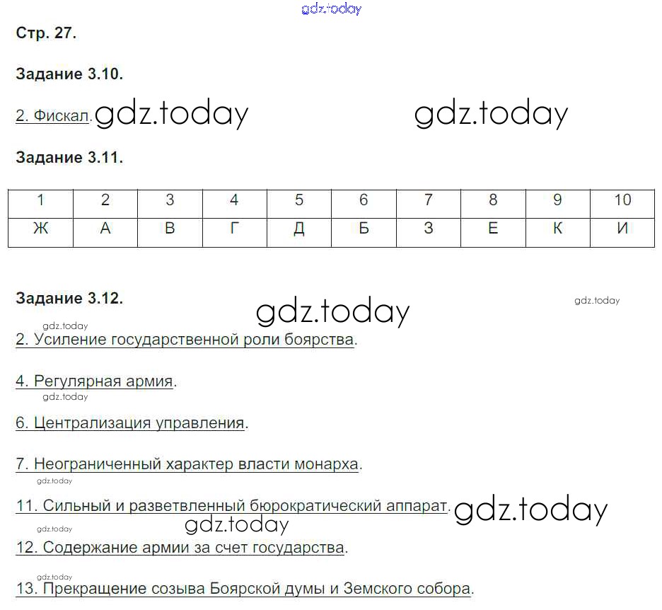 На страницах сайта gdz.today вы найдете учебный и вспомогательный материал, направленный на улучшения знаний школьной программы. ГДЗ - онлайн мир знаний Страницы (решение) 27 Рабочей тетради по Истории России для 7 класса Симонова Экзамен УМК 2015