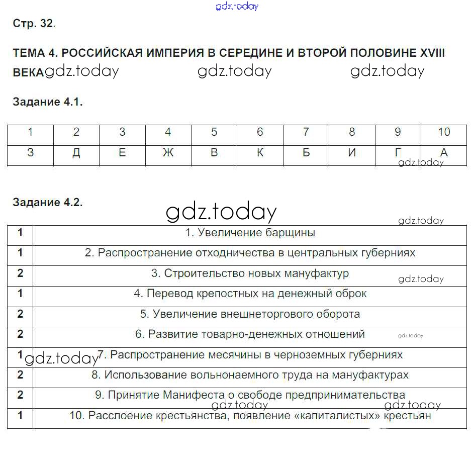 На страницах сайта gdz.today вы найдете учебный и вспомогательный материал, направленный на улучшения знаний школьной программы. ГДЗ - онлайн мир знаний Страницы (решение) 32 Рабочей тетради по Истории России для 7 класса Симонова Экзамен УМК 2015