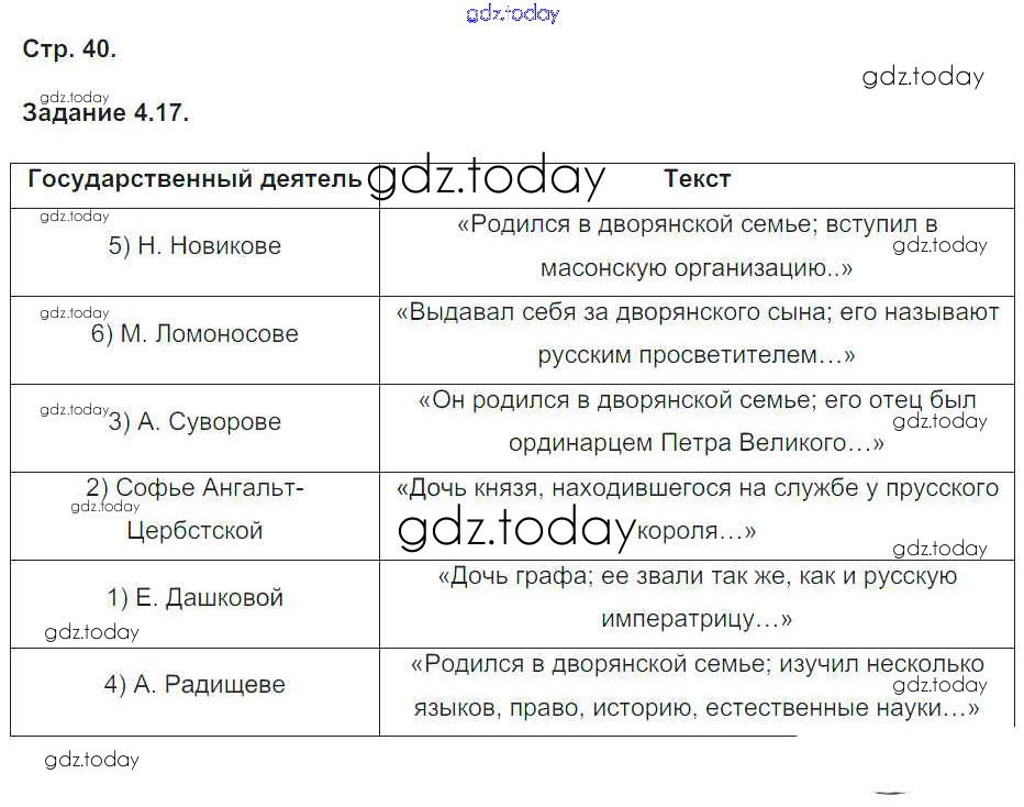 На страницах сайта gdz.today вы найдете учебный и вспомогательный материал, направленный на улучшения знаний школьной программы. ГДЗ - онлайн мир знаний Страницы (решение) 40 Рабочей тетради по Истории России для 7 класса Симонова Экзамен УМК 2015