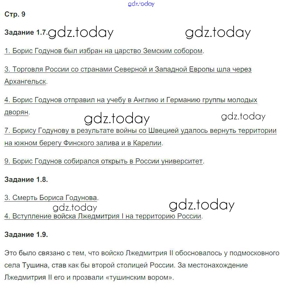 На страницах сайта gdz.today вы найдете учебный и вспомогательный материал, направленный на улучшения знаний школьной программы. ГДЗ - онлайн мир знаний Страницы (решение) 9 Рабочей тетради по Истории России для 7 класса Симонова Экзамен УМК 2015