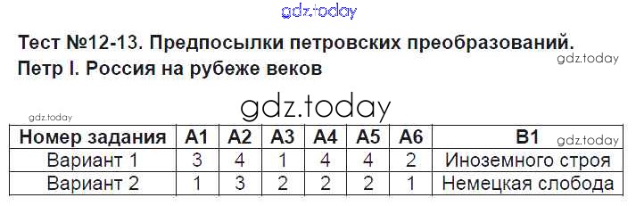 На страницах сайта gdz.today вы найдете учебный и вспомогательный материал, направленный на улучшения знаний школьной программы. ГДЗ - онлайн мир знаний Решение к тестам 12-13 Контрольным измерительным материалам по Истории России для 7 класса Смирнов Экзамен 2015