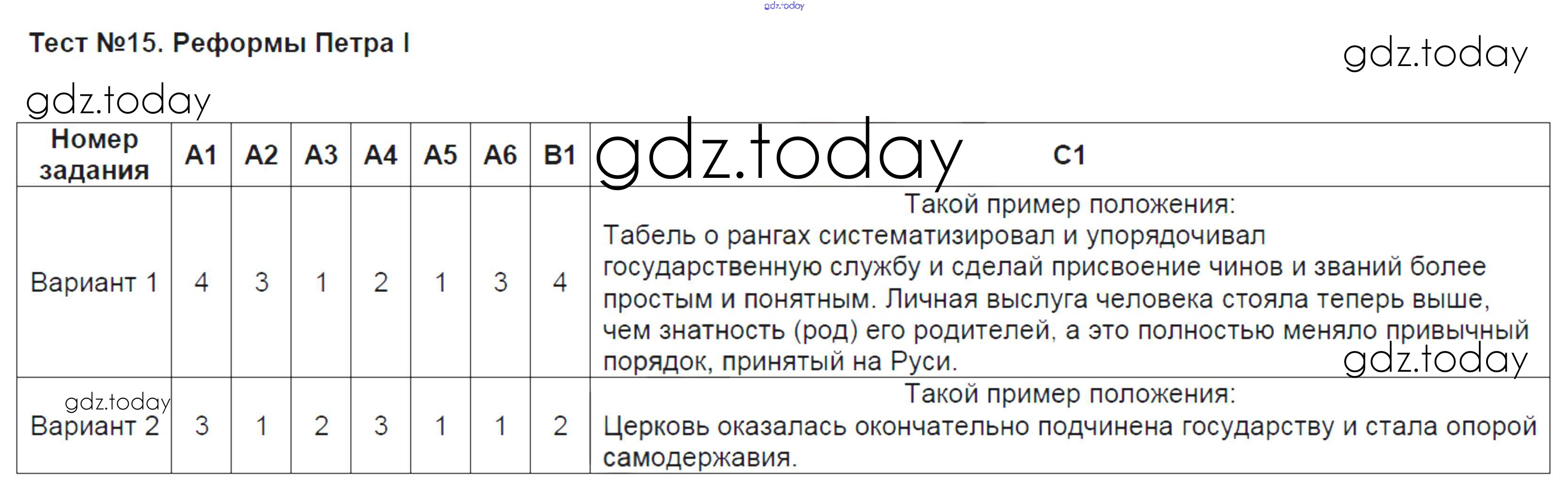 На страницах сайта gdz.today вы найдете учебный и вспомогательный материал, направленный на улучшения знаний школьной программы. ГДЗ - онлайн мир знаний Решение к тестам 15 Контрольным измерительным материалам по Истории России для 7 класса Смирнов Экзамен 2015
