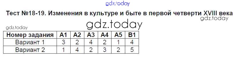 На страницах сайта gdz.today вы найдете учебный и вспомогательный материал, направленный на улучшения знаний школьной программы. ГДЗ - онлайн мир знаний Решение к тестам 18-19 Контрольным измерительным материалам по Истории России для 7 класса Смирнов Экзамен 2015