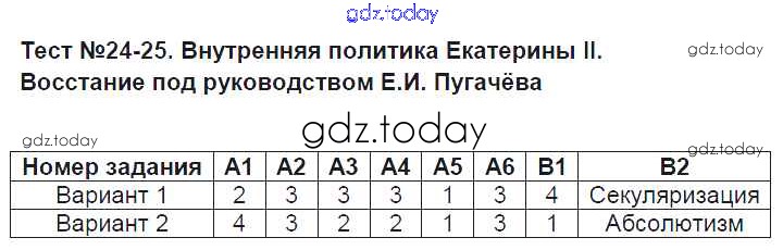 На страницах сайта gdz.today вы найдете учебный и вспомогательный материал, направленный на улучшения знаний школьной программы. ГДЗ - онлайн мир знаний Решение к тестам 24-25 Контрольным измерительным материалам по Истории России для 7 класса Смирнов Экзамен 2015