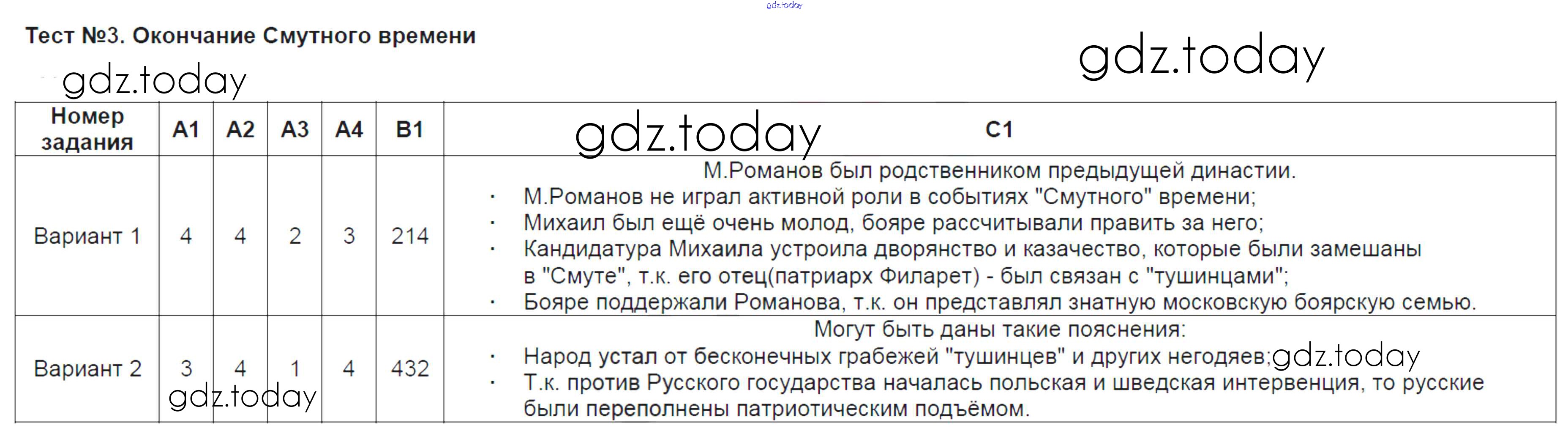 На страницах сайта gdz.today вы найдете учебный и вспомогательный материал, направленный на улучшения знаний школьной программы. ГДЗ - онлайн мир знаний Решение к тестам 3 Контрольным измерительным материалам по Истории России для 7 класса Смирнов Экзамен 2015