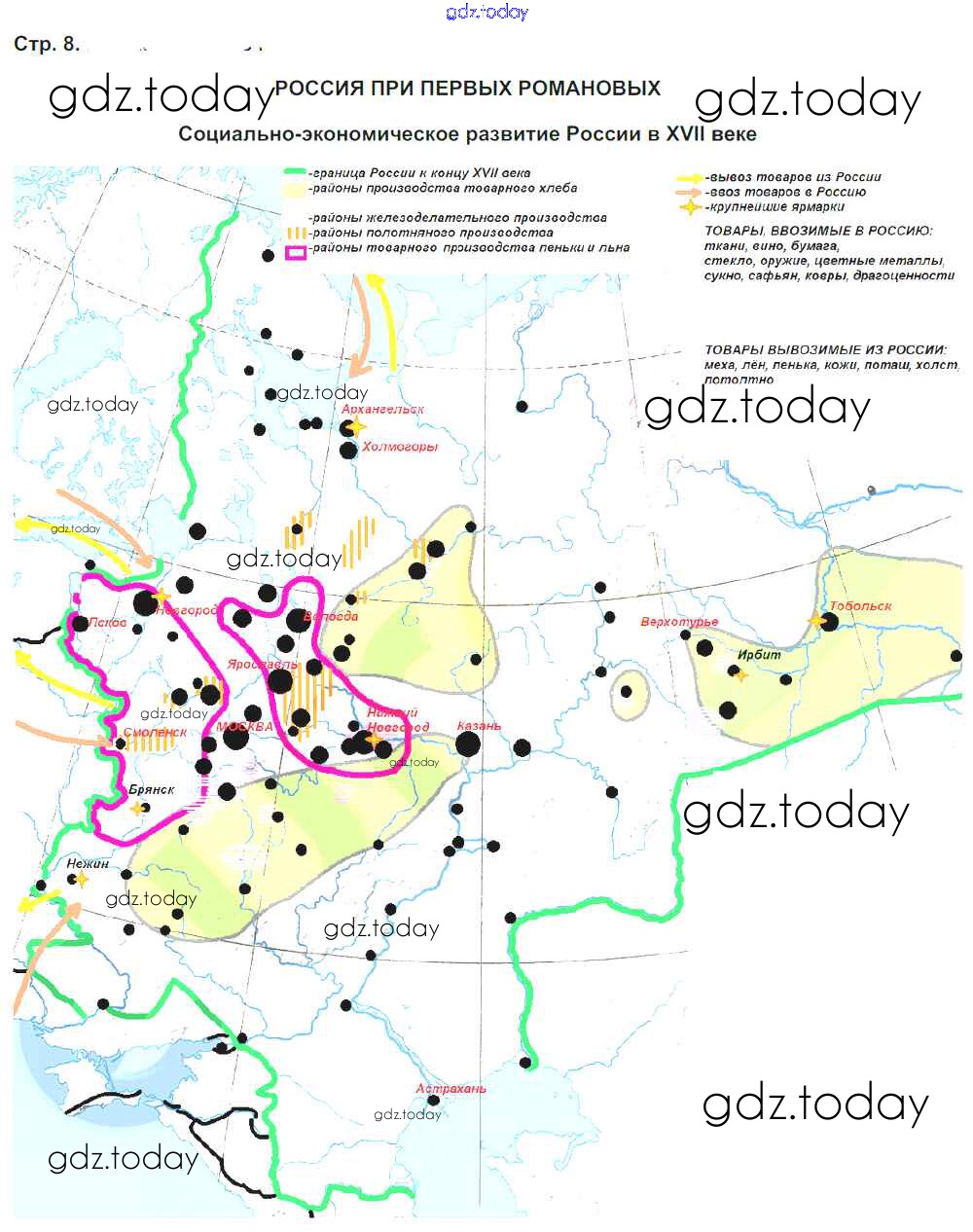 На страницах сайта gdz.today вы найдете учебный и вспомогательный материал, направленный на улучшения знаний школьной программы. ГДЗ - онлайн мир знаний Страницы (решение) 8 Контурным картам по Истории России для 7 класса Тороп Просвещение УМК 2020
