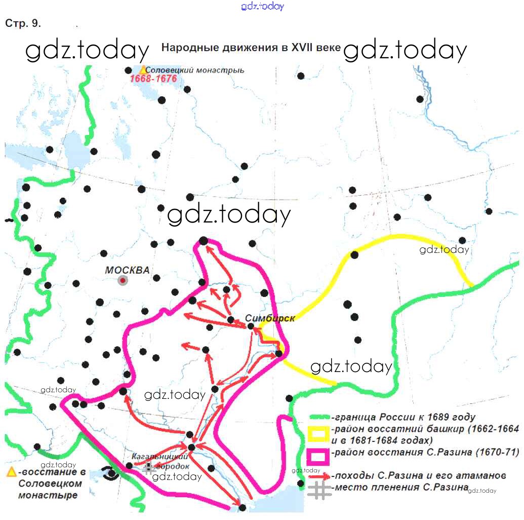 На страницах сайта gdz.today вы найдете учебный и вспомогательный материал, направленный на улучшения знаний школьной программы. ГДЗ - онлайн мир знаний Страницы (решение) 9 Контурным картам по Истории России для 7 класса Тороп Просвещение УМК 2020