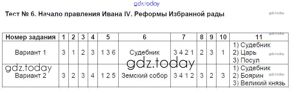 На страницах сайта gdz.today вы найдете учебный и вспомогательный материал, направленный на улучшения знаний школьной программы. ГДЗ - онлайн мир знаний Часть 1. Решение к тестам 6 Тестам по Истории России для 7 класса Воробьёва Экзамен УМК 2017