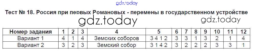 На страницах сайта gdz.today вы найдете учебный и вспомогательный материал, направленный на улучшения знаний школьной программы. ГДЗ - онлайн мир знаний Часть 2. Решение к тестам 18 Тестам по Истории России для 7 класса Воробьёва Экзамен УМК 2017