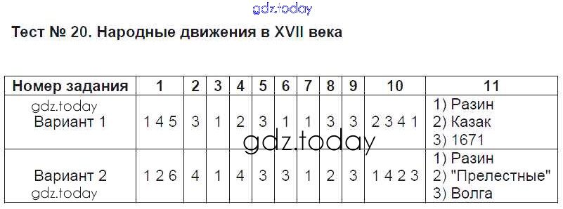 На страницах сайта gdz.today вы найдете учебный и вспомогательный материал, направленный на улучшения знаний школьной программы. ГДЗ - онлайн мир знаний Часть 2. Решение к тестам 20 Тестам по Истории России для 7 класса Воробьёва Экзамен УМК 2017