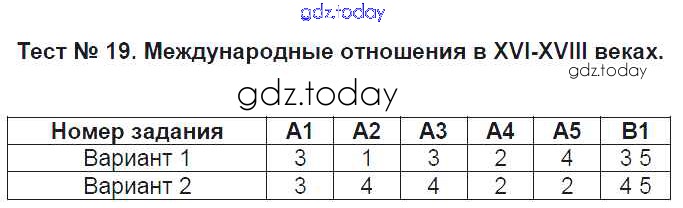 На страницах сайта gdz.today вы найдете учебный и вспомогательный материал, направленный на улучшения знаний школьной программы. ГДЗ - онлайн мир знаний Решение к тестам 19 Контрольно-измерительным материалам (КИМ) по Истории для 7 класса Волкова ВАКО 2017